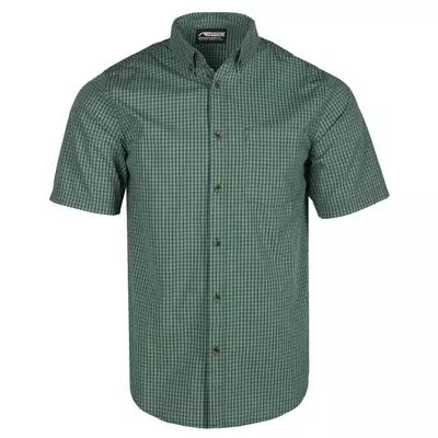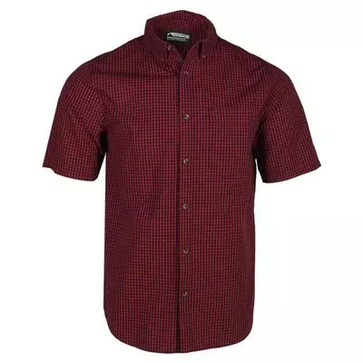 Wash, dry, and go. The easy-care fabric of the Cain Short Sleeve Woven Shirt makes working it into your weekly wardrobe a breeze. At 2.6 oz. this cotton/poly plain weave fabric looks sharp and keeps you comfortable.
