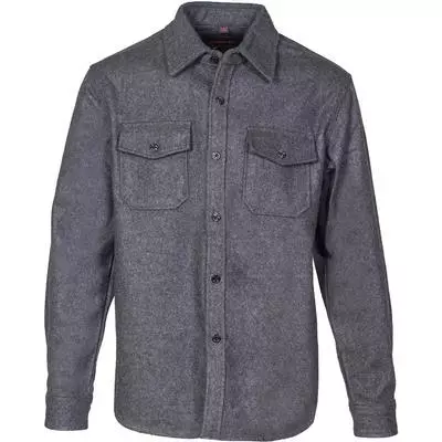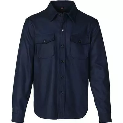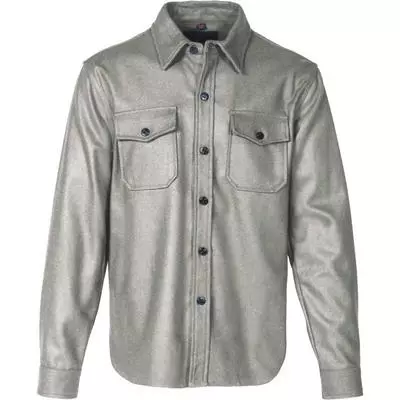 30” 20 oz Wool blend unlined CPO shirt features mini anchor button front closure, two upper front pockets and button cuff closure.